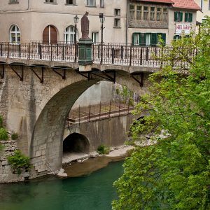 Tako daleč nisem šla. Obrnila sem se in šla za avtobusno postajo spet po mostu, ki pa mu menda pravijo brvca. Prišla sem na Mestni trg. Razširjeni cesti podoben trg je bil nekdaj središče družabnega in gospodarskega življenja.